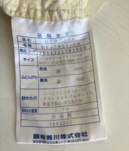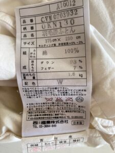 今回お預かりしたのは、西川・昭和西川の羽毛ふとんで、